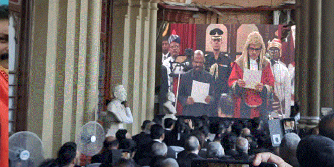 সংবাদ কলকাতা, ১১ মে: অবশেষে কলকাতা হাইকোর্ট পেল নতুন বিচারপতি। আজ, বৃহস্পতিবার হাইকোর্টের প্রধান বিচারপতি পদে শপথ নিলেন টিএস শিবজ্ঞানম। তাঁকে শপথবাক্য পাঠ করান রাজ্যপাল সিভি আনন্দ বোস। সেই শপথ অনুষ্ঠানে হাজির হন মুখ্যমন্ত্রী মমতা বন্দ্যোপাধ্যায় সহ বহু বরিষ্ঠ আইনজীবী ও বারের সদস্যরাও। উপস্থিত ছিলেন বিধানসভার অধ্যক্ষ বিমান বন্দ্যোপাধ্যায় ও কলকাতার মেয়র ফিরহাদ হাকিম। এছাড়া অন্যান্য বিশিষ্ট জনেরাও এদিন এই শপথ অনুষ্ঠানের সাক্ষী ছিলেন। একটি বড় পর্দার মাধ্যমে হাইকোর্টের বারান্দায় শপথগ্রহণ অনুষ্ঠানের আয়োজন করা হয়।
