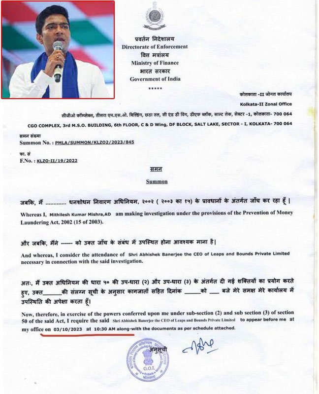 সংবাদ কলকাতা: ফের ইডি-র তলব তৃণমূল কংগ্রেসের সর্বভারতীয় সাধারণ সম্পাদক অভিষেক বন্দ্যোপাধ্যায়কে। আগামী ৩রা অক্টোবর তাঁর হাজিরার দিন। সল্টলেকের cgo complex-এ তলব করা হয়েছে তাঁকে। মূলত নিয়োগ দুর্নীতি মামলাতেই তাঁকে তলব করা হয়েছে বলে জানা গিয়েছে।