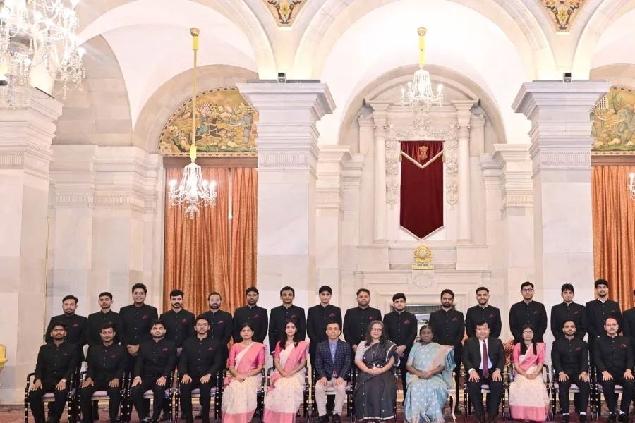 রাষ্ট্রপতি দ্রৌপদী মুর্মু বুধবার রাষ্ট্রপতি ভবনে ইন্ডিয়ান ডিফেন্স এস্টেট সার্ভিস, মিলিটারি ইঞ্জিনিয়ার সার্ভিস এবং সেন্ট্রাল ওয়াটার ইঞ্জিনিয়ারিং সার্ভিসের প্রবেশনারদের সঙ্গে সাক্ষাৎ করেন।