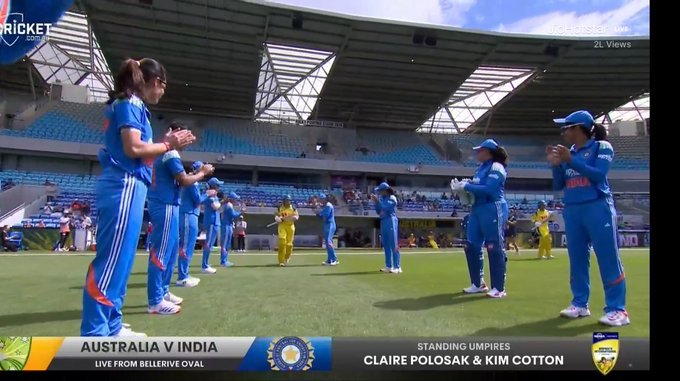 অস্ট্রেলিয়ার অধিনায়ক Alyssa Healy ৫০ ওভারের ক্রিকেটে শেষ ম্যাচ খেলতে নামতেই অনন্য সম্মান জানাল India women’s national cricket team। রবিবার বেলারিভ ওভালে তৃতীয় ওয়ানডের আগে ‘উইমেন ইন ব্লু’ গার্ড অব অনার দিয়ে অভ্যর্থনা জানায় অবসর নিতে চলা উইকেটকিপার-ব্যাটারকে।