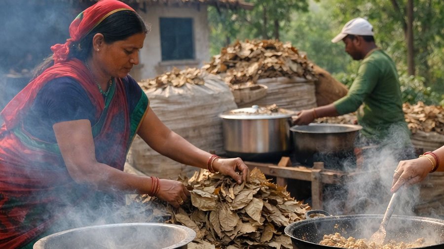 গ্যাসের সঙ্কটে জয়পুর জঙ্গলের রিসর্টে নতুন উদ্যোগ, শুকনো শালপাতা জ্বালিয়েই রান্না