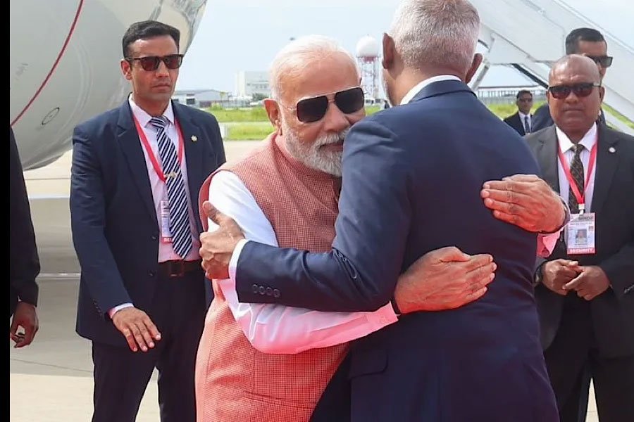প্রধানমন্ত্রী নরেন্দ্র মোদী শুক্রবার মালে বিমানবন্দরে পৌঁছানোর পর মালদ্বীপের রাষ্ট্রপতি মোহাম্মদ মুইজ্জুর কাছ থেকে উষ্ণ আলিঙ্গন গ্রহণ করেন। প্রধানমন্ত্রী মোদী যখন মালেতে অবতরণ করেন, তখন মালদ্বীপের বিদেশমন্ত্রী, প্রতিরক্ষামন্ত্রী, অর্থমন্ত্রী এবং হোমল্যান্ড সিকিউরিটি মন্ত্রীরাও উপস্থিত ছিলেন।