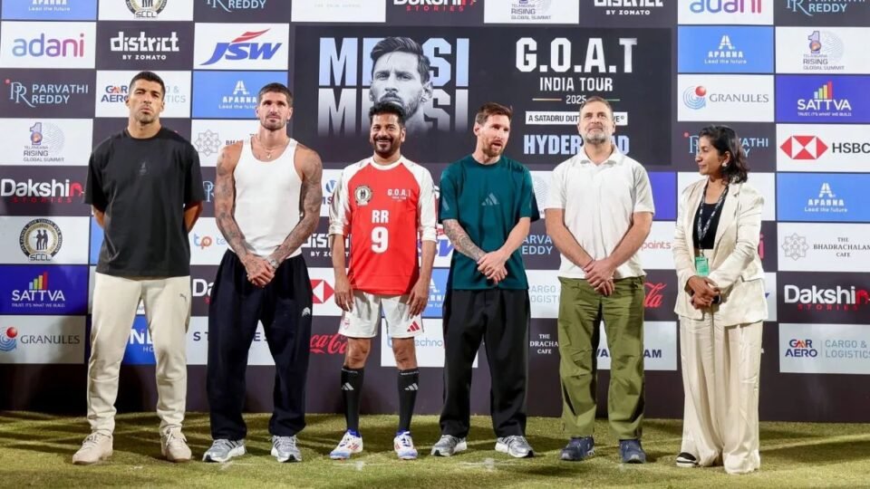 ৭-এ-৭ প্রদর্শনী ফুটবল ম্যাচে অংশ নেন মেসি, যেখানে খেলেন তেলেঙ্গানার মুখ্যমন্ত্রী রেভান্থ রেড্ডিও। গ্যালারি জুড়ে ‘মেসি-মেসি’ ধ্বনিতে মুখরিত হয়ে ওঠে স্টেডিয়াম। দর্শকদের উচ্ছ্বাসের মাঝে বিরোধী দলনেতা রাহুল গান্ধীর সঙ্গেও সাক্ষাৎ করেন মেসি।