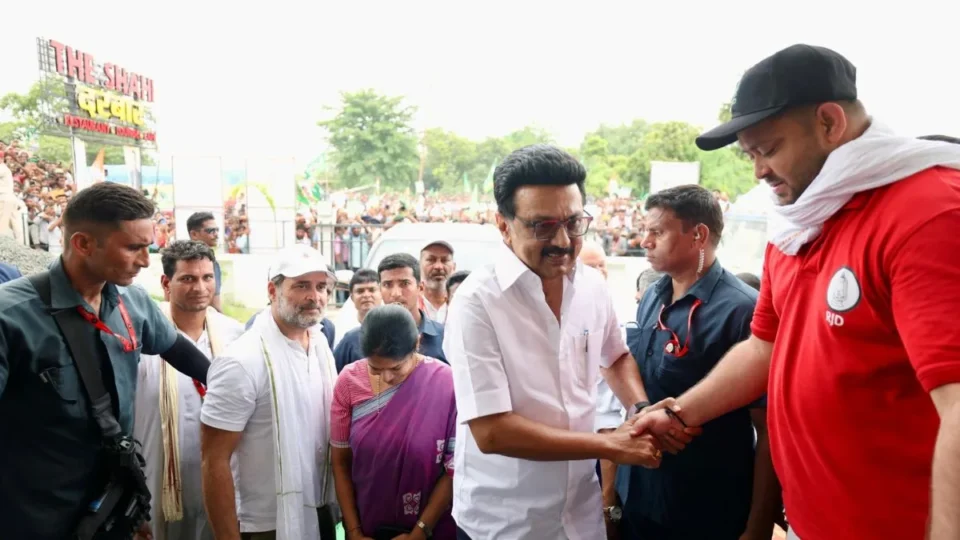 তামিলনাড়ুর মুখ্যমন্ত্রী এম.কে. স্টালিন বুধবার বিহারের মুজাফ্ফরপুরে অনুষ্ঠিত ‘ভোটার অধিকার যাত্রা’-য় যোগ দিয়ে নির্বাচন কমিশন (EC) ও বিজেপির বিরুদ্ধে বিরোধীদের “ভোট চুরি” অভিযোগকে আরও তীব্র করেন।তিনি বিহারের ভোটার তালিকা নিয়ে বিশেষ পুনর্বিবেচনা প্রক্রিয়া (SIR) প্রসঙ্গে বলেন, “৬৫ লক্ষ ভোটারের নাম মুছে ফেলা গণতন্ত্রের হত্যা। এটি সন্ত্রাসবাদের চেয়েও ভয়ঙ্কর।”ডিএমকে সভাপতি স্টালিন তাঁর বোন ও সাংসদ কানিমোঝি করুণানিধিকে সঙ্গে নিয়ে যাত্রায় অংশ নেন।