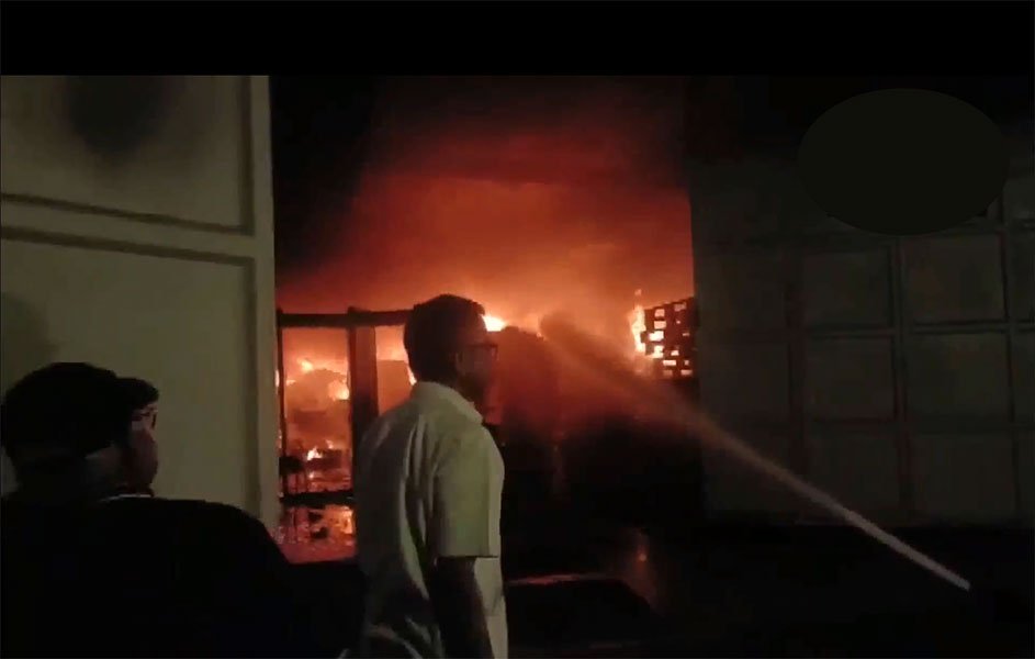 Fire tenders and emergency personnel rushed to the scene shortly after the blaze was reported. Authorities are working to contain the fire and evacuate anyone still inside the building.