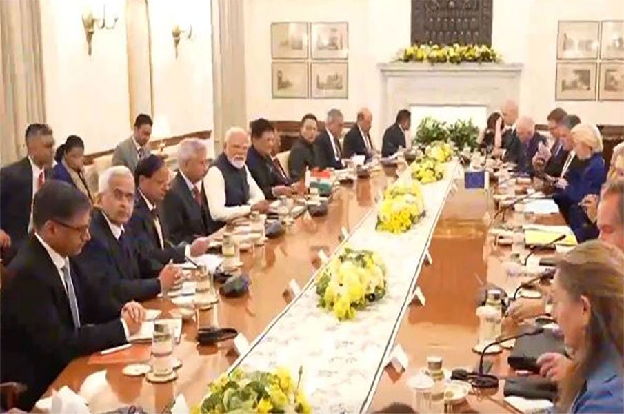 দিল্লি: ভারত–ইউরোপীয় ইউনিয়ন সম্পর্ক আরও গভীর করতে সোমবার ইউরোপীয় ইউনিয়নের শীর্ষ নেতাদের সঙ্গে প্রতিনিধি-পর্যায়ের বৈঠক করলেন প্রধানমন্ত্রী নরেন্দ্র মোদি। রাজধানী নয়াদিল্লির হায়দরাবাদ হাউসে অনুষ্ঠিত এই বৈঠকে উপস্থিত ছিলেন ইউরোপীয় কমিশনের প্রেসিডেন্ট উরসুলা ভন ডার লেয়েন এবং ইউরোপীয় কাউন্সিলের প্রেসিডেন্ট আন্তোনিও কস্তা।