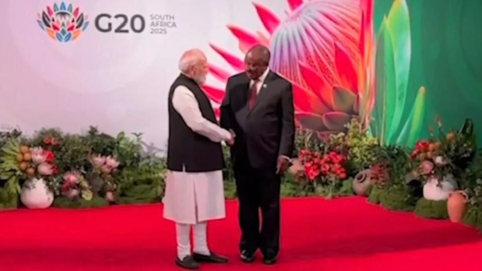 জোহানেসবার্গ, ২২ নভেম্বর: দক্ষিণ আফ্রিকার প্রেসিডেন্ট সিরিল রামাফোসা আজ জি-২০ শীর্ষ সম্মেলনের অধিবেশনস্থলে পৌঁছেই প্রধানমন্ত্রী নরেন্দ্র মোদীকে উষ্ণ অভ্যর্থনা জানান। দুই দেশের নেতার মধ্যে সৌজন্য বিনিময়ের পাশাপাশি আলোচনায় উঠে আসে বৈশ্বিক সহযোগিতা জোরদার করা, বহুপাক্ষিক কাঠামোয় সংস্কার এবং উন্নয়নশীল দেশগুলির অগ্রাধিকারের বিষয়গুলি।