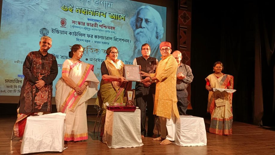 কলকাতা,১০ই মে। গতকাল কলকাতার ‘ইন্ডিয়ান কাউন্সিল অফ কালচারারাল রিলেশনস'(ICCR) -এর সত্যজিৎ রায় সভাগৃহে, ‘সংস্কার ভারতী পশ্চিমবঙ্গ’-এর পক্ষ থেকে ‘কবি প্রণাম, ঐ মহামানব আসে’ অনুষ্ঠানের আয়োজন করা হয়। বর্তমানে ভারত-পাকিস্থান যুদ্ধ চলছে। সেই যুদ্ধের আবহে রবীন্দ্রনাথ ঠাকুরের স্বদেশ চিন্তা আপামর বাঙালি তথা ভারতবাসীর কাছে পৌঁছে দিতেই সংস্কার ভারতীর এই আয়োজন।