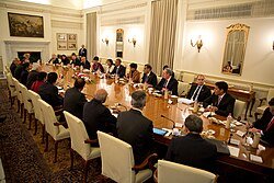 President Obama and Prime Minister Modi participate in an expanded bilateral meeting at Hyderabad House in New Delhi. (Official White House Photo by Pete Souza)