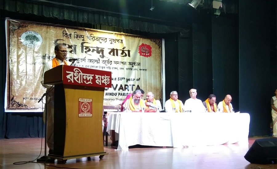 বিশ্ব হিন্দু পরিষদের মুখপাত্র ‘বিশ্ব হিন্দু বার্তা’র ৫০ তম বর্ষ উদযাপন করল পত্রিকার পরিচালন এবং প্রচার ও প্রসার সমিতি। জোড়াসাঁকোর ঠাকুর বাড়ি প্রাঙ্গনের রথীন্দ্র মঞ্চে এই মাসিক পত্রিকার সুবর্ণ জয়ন্তী বর্ষের অনুষ্ঠানে উপস্থিত ছিলেন বিশ্ব হিন্দু পরিষদের প্রদেশ ও জাতীয় স্তরের কার্যকর্তারা। অনুষ্ঠানের মুখ্য অতিথি ও বক্তা হিসেবে উপস্থিত ছিলেন বিশ্ব হিন্দু পরিষদের সর্ব ভারতীয় সাধারণ সম্পাদক শ্রী বজরঙ্গলাল বাগড়া। অনুষ্ঠানে প্রধান অতিথির আসন অলংকৃত করেন শ্রী সিমেন্ট লিমিটেডের চেয়ারম্যান শ্রী হরিমোহন বাঁগড়। এছাড়া এই সুবর্ণ জয়ন্তী উৎসব কমিটির আহ্বায়ক ও বিশিষ্ট শিল্পপতি শ্রী অরুণ চুড়িওয়ালের গৌরবময় উপস্থিতি অনুষ্ঠানকে বিশেষভাবে আলোকিত করে।